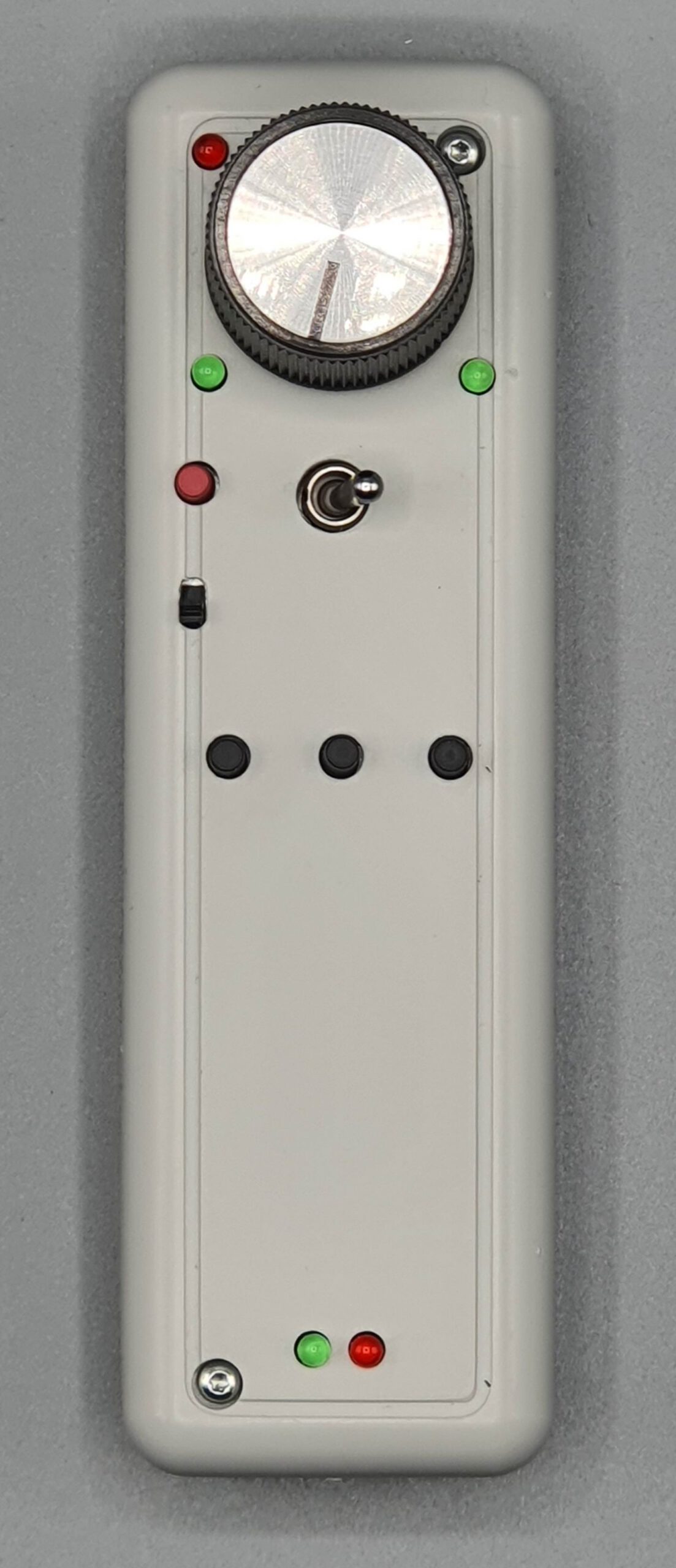 Minimalistisch, wie der Ur-Vater aller FREDs. Nur ein Drehregler zum Fahren, ein Kippschalter für die Fahrtrichtung und die 3 Funktionen F0, F1 und F2.